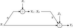 The Gaussian relay channel shown here forms the fundamental building block for multi-user information theory. The channel capacity of this simple three node network is still unsolved for more than 30 years. Many coding schemes have been proposed which achieve rates within constant bits to the cut set upper bound.
