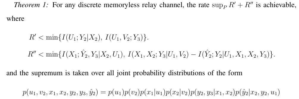 The main result of the work is the following achievability theorem for the discrete memoryless single relay channel using superposition noisy network coding.